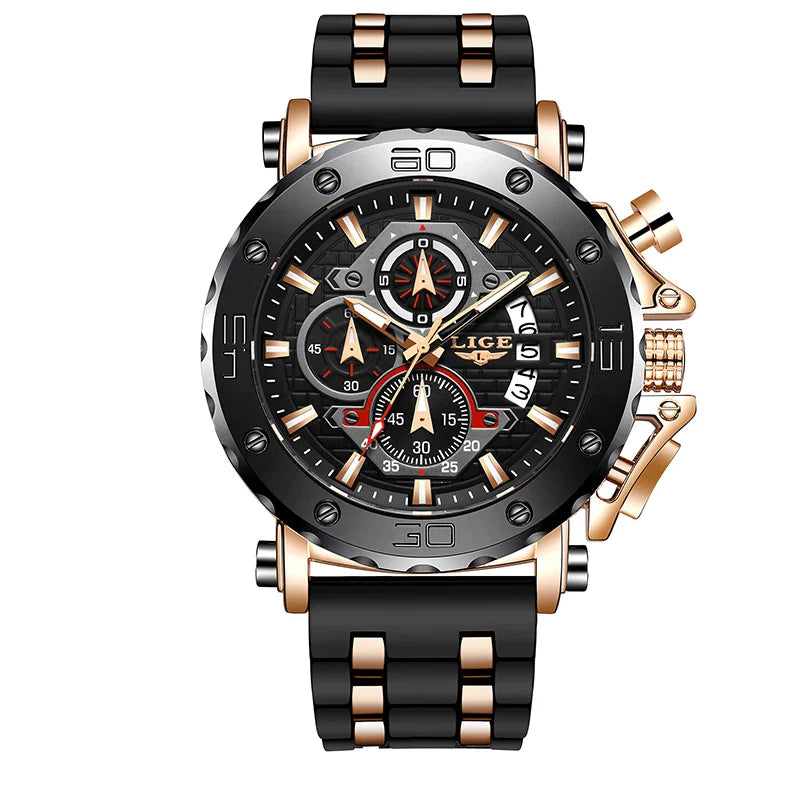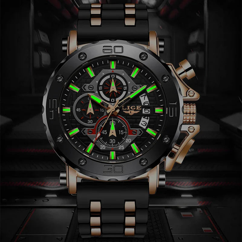 LIGE 2025 New Business Silicone Mens Watches Top Brand Luxury Quartz Watch For Men Waterproof Sport Big Dial Military Wristwatch